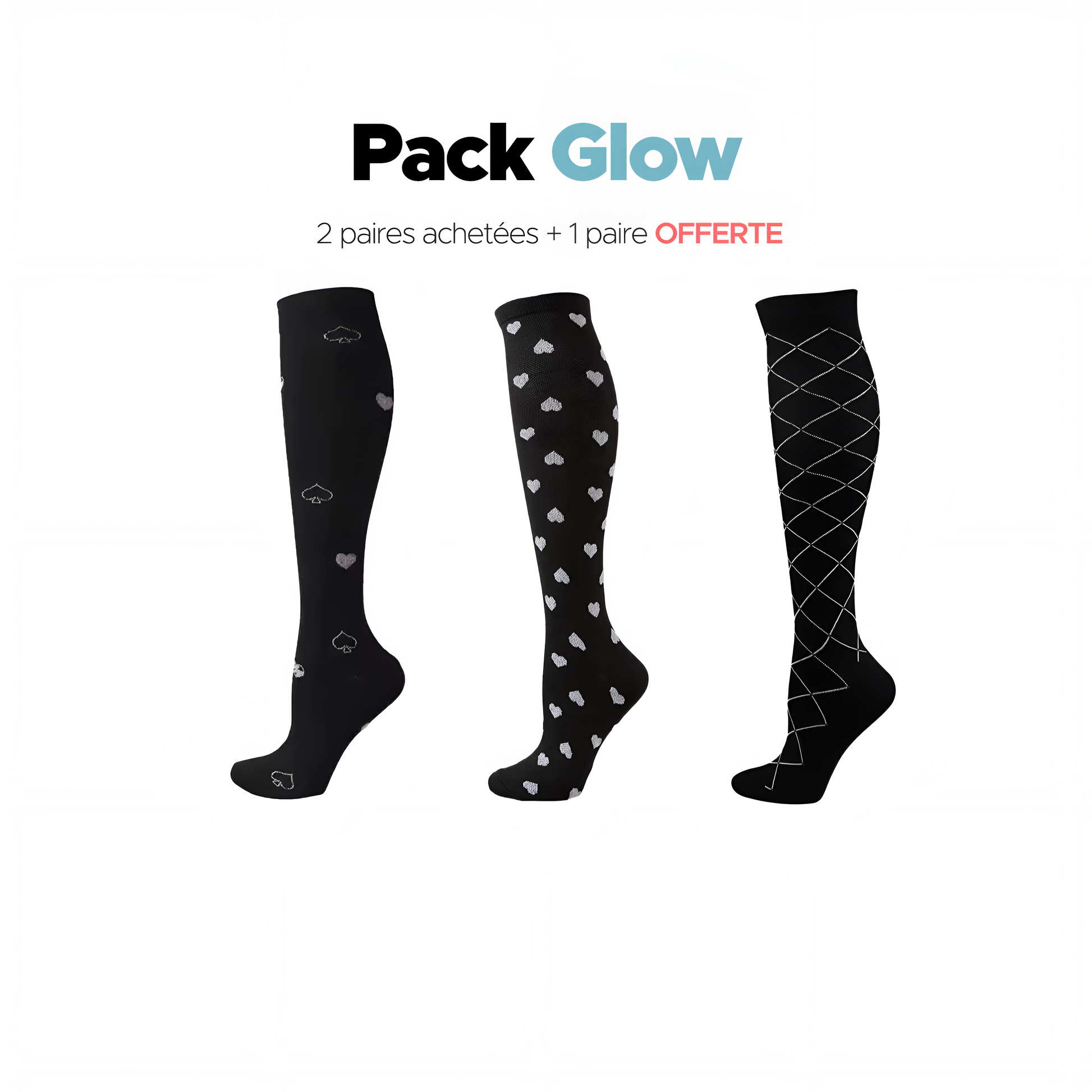 Les chaussettes de compression apportent un soutien efficace pour améliorer la circulation sanguine et soulager de nombreux inconforts du quotidien. Grâce à leur pression progressive, elles aident à réduire les jambes lourdes, les gonflements (œdèmes), et peuvent prévenir l’apparition de varices. Elles sont également utiles pour diminuer les sensations de jambes sans repos et favoriser une meilleure récupération après une longue journée ou une activité physique. Que ce soit pour travailler, voyager ou pratiquer du sport, elles offrent confort, légèreté et bien-être au quotidien.